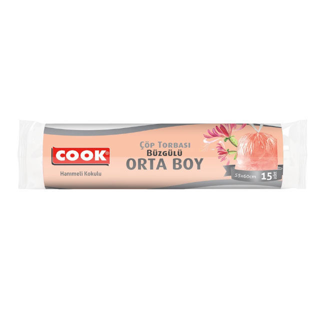 Cook Büzgüllü Çöp Torbası Orta Boy Hanımeli 15'li