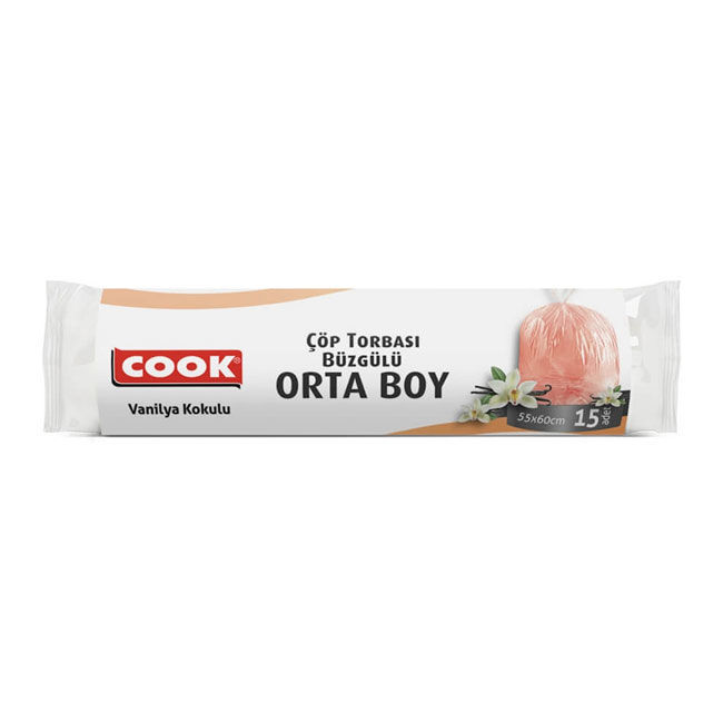 Cook Büzgüllü Çöp Torbası Orta Boy Vanilya 15'li
