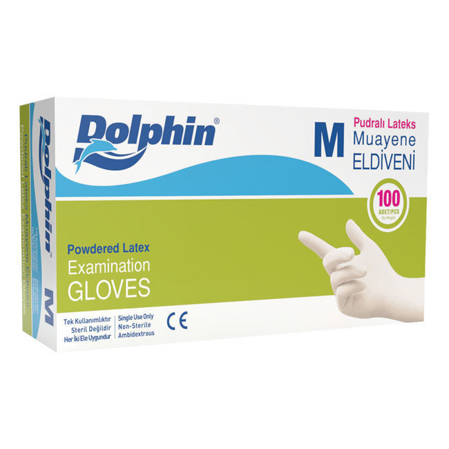 Dolphin Muayene Eldiveni Pudralı Beyaz M 100lü
