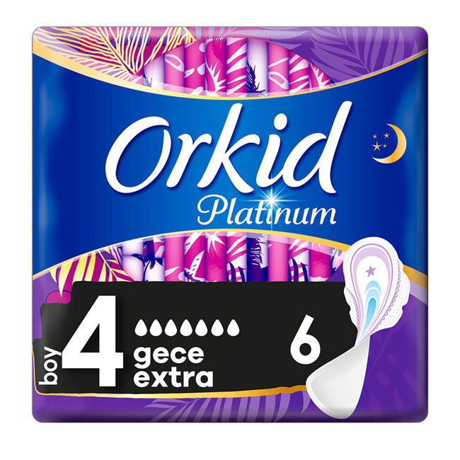 Orkid Platinum Hijyenik Ped Gece Extra Tekli Paket 6 Ped