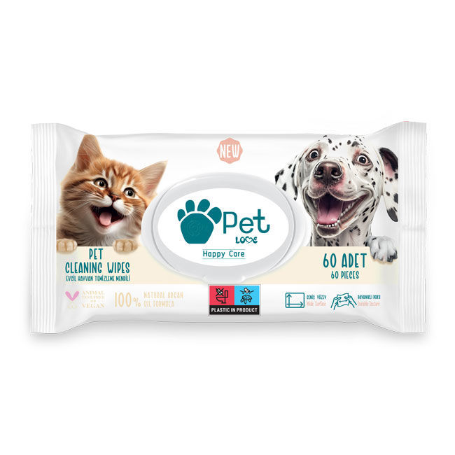 Petlove Evcil Hayvan Temizleme Mendili 60'lı